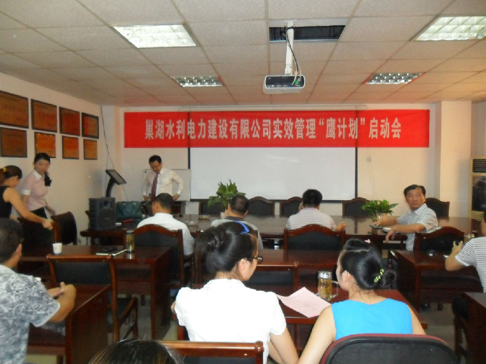2013年8月13日上午8:30分在公司六樓會議室由深圳中旭公司舉行巢湖水利電力建設有限公司實效管理“鷹計劃”啟動會,公司各部門及實驗室等全體人員參加了該會。會上由中旭公司羅天熙、任潔兩位老師給公司“鷹計劃”執行前作了詳細動員。