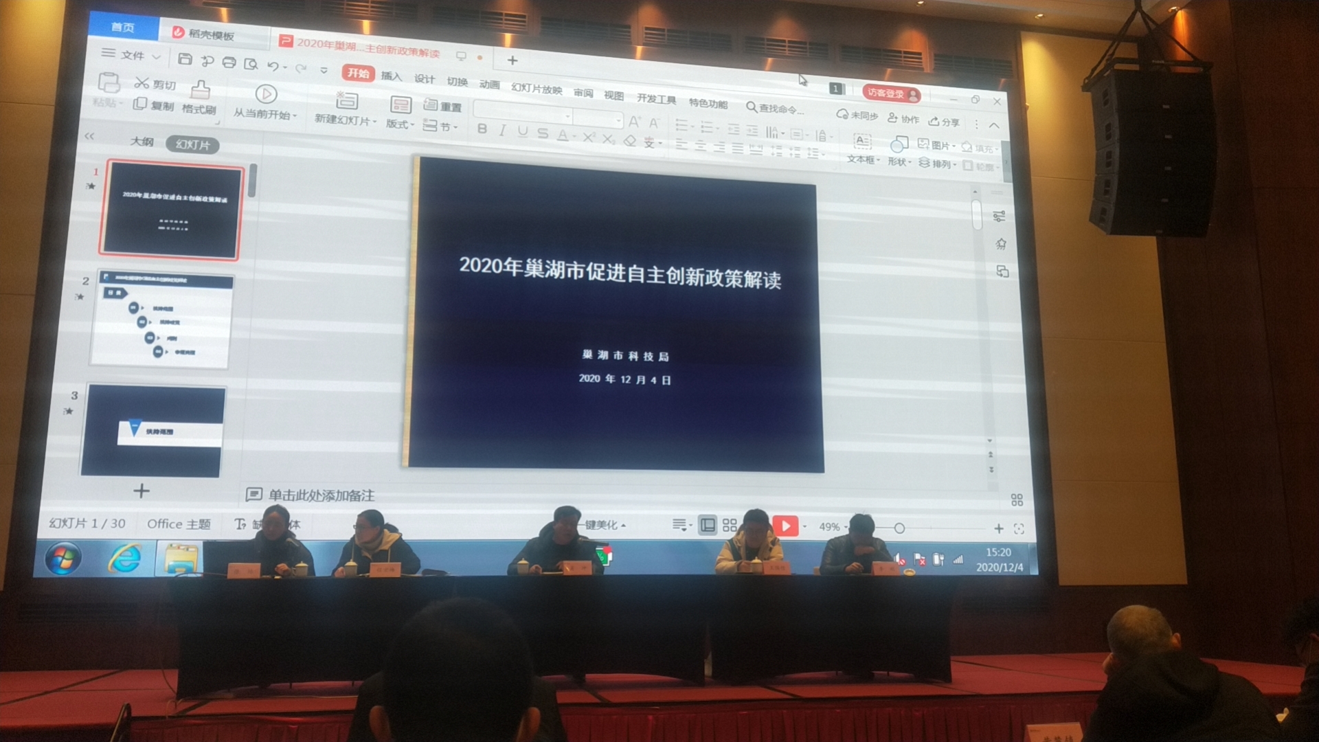 為幫助科技型企業(yè)及時知曉政策、理解政策、把握政策、用好政策,充分享受政策紅利,提高企業(yè)自主創(chuàng)新意識,推動各級科技創(chuàng)新政策在我市更好落地落實,巢湖水利電力建設有限公司于2020年12月4日在巢湖國際飯店參加了巢湖市科技創(chuàng)新政策宣講會。