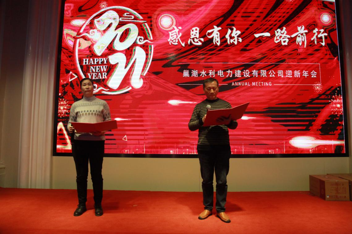 2020是成長的一年、蛻變的一年,我們收獲滿滿。2021年已到來,新的一年開啟新的希望,新的歷程承載新的夢想,巢湖水利電力建設有限公司12月30日晚在巢湖碧桂園鳳凰酒店舉行“感恩有你,一路前行”迎新年會!此次年會邀請公司股東、員工、建造師、八大員還有公司退休老職工歡聚一堂。