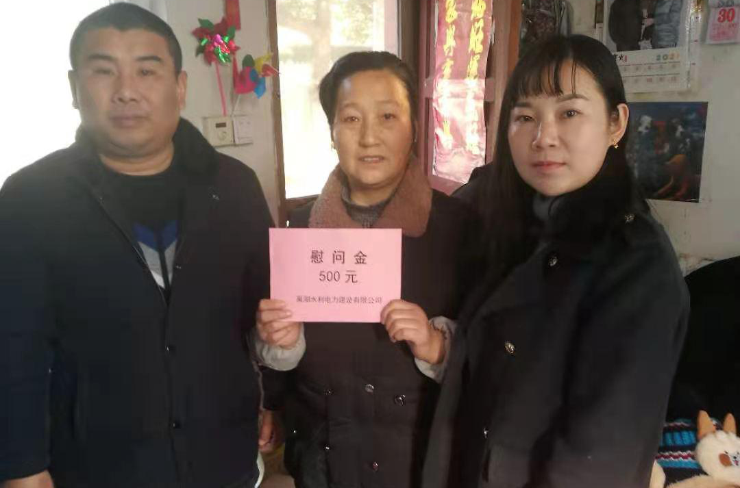 2021年1月30日上午,巢湖水利電力建設(shè)有限公司副總經(jīng)理曹滿(mǎn)香、辦公室主任柳政以及公司退休老干部柳家瓊同志去公司南大院看望困難職工遺屬,與他們進(jìn)行了親切的交談,鼓勵(lì)他們保持積極樂(lè)觀的生活態(tài)度,并為他們送上節(jié)日的慰問(wèn)和祝福,向他們送去了黨和政府的關(guān)懷和溫暖,還為每戶(hù)送去了500元的慰問(wèn)金。