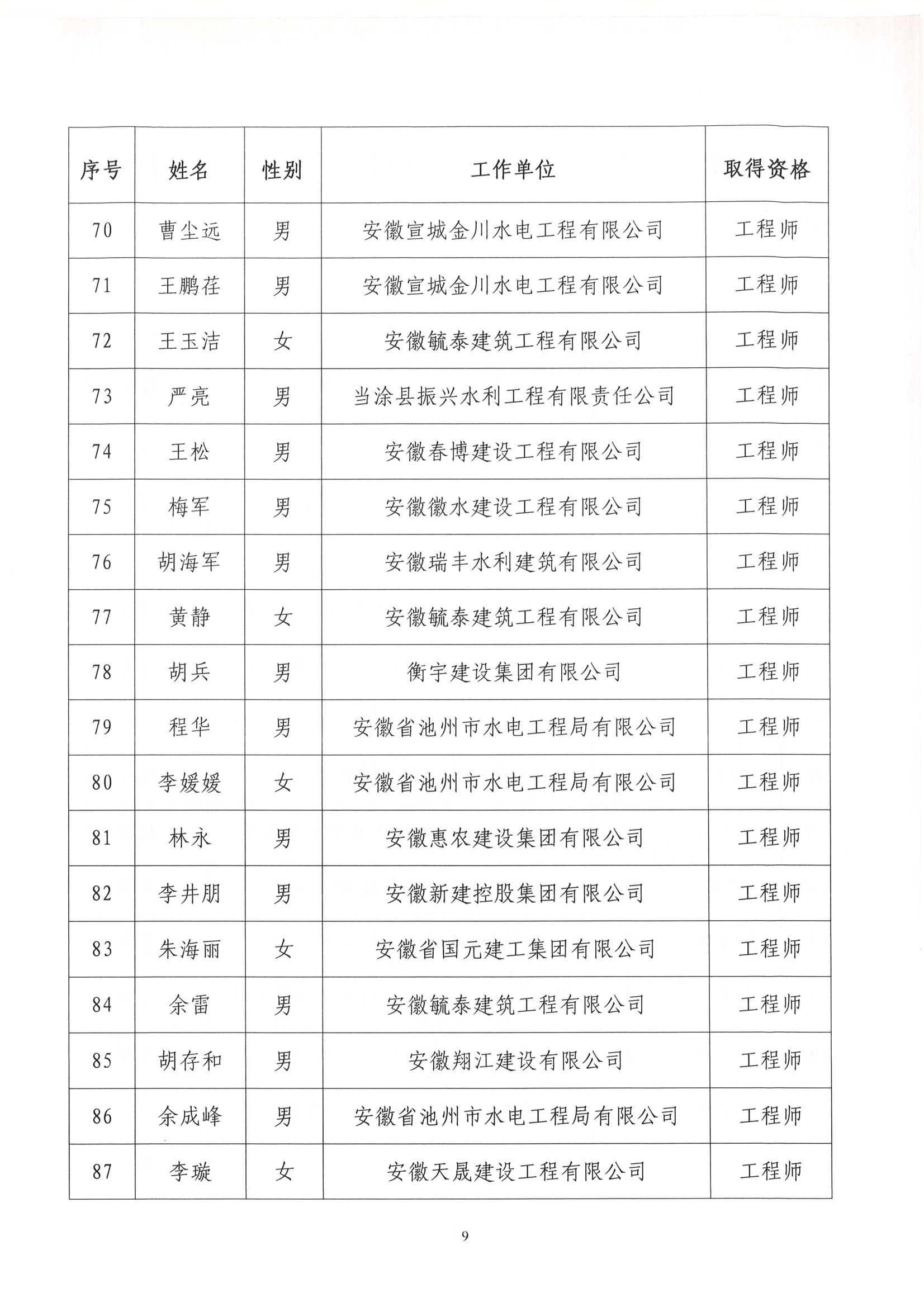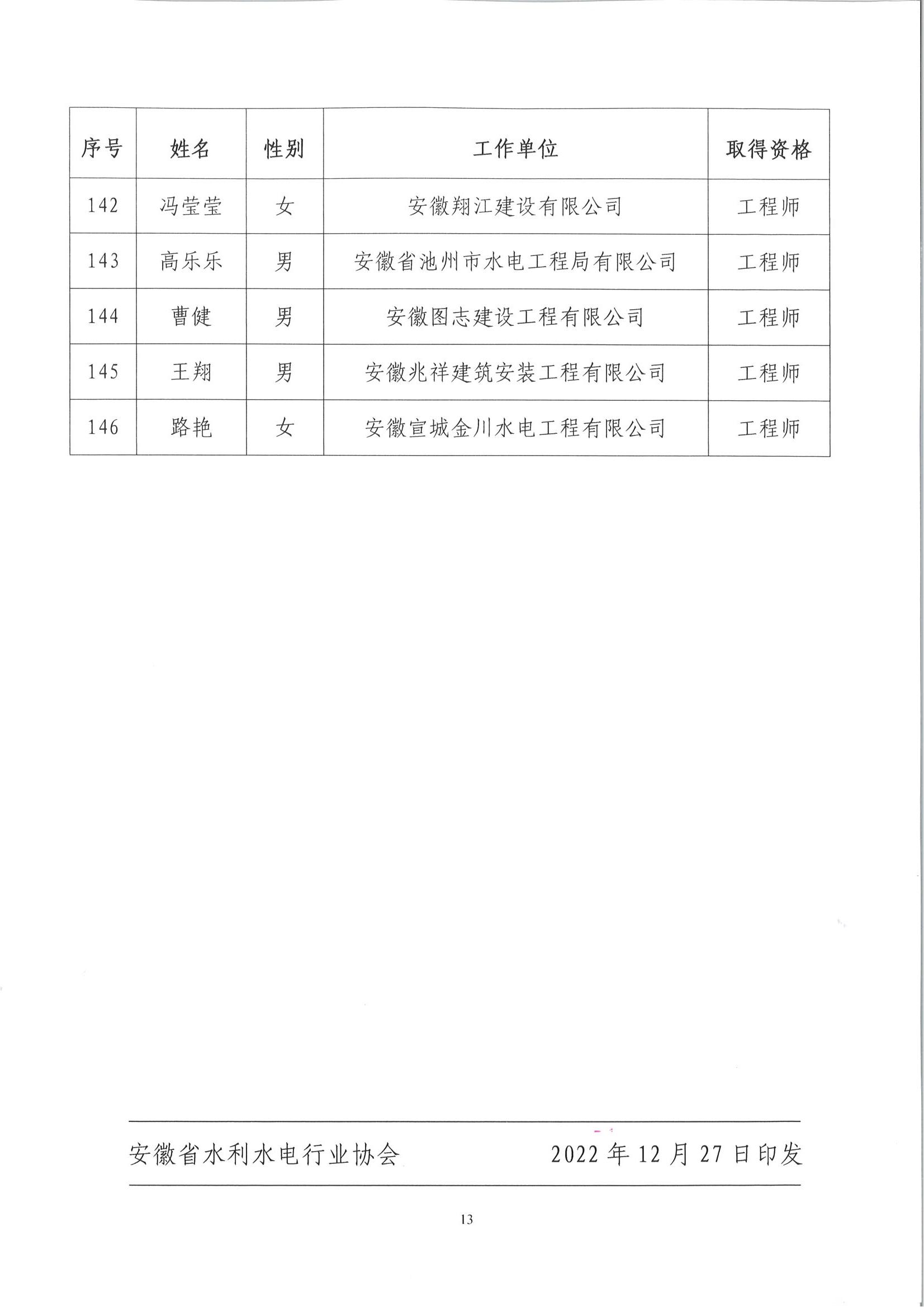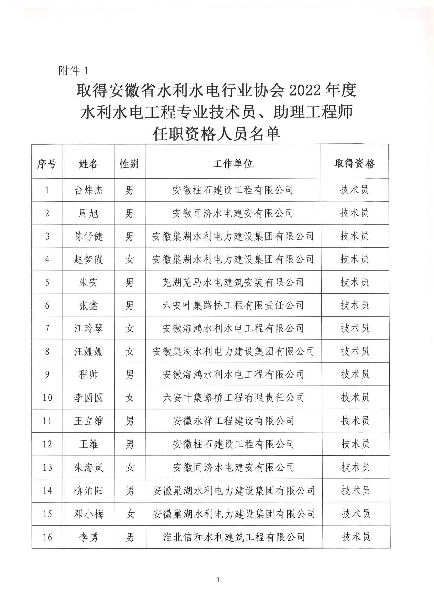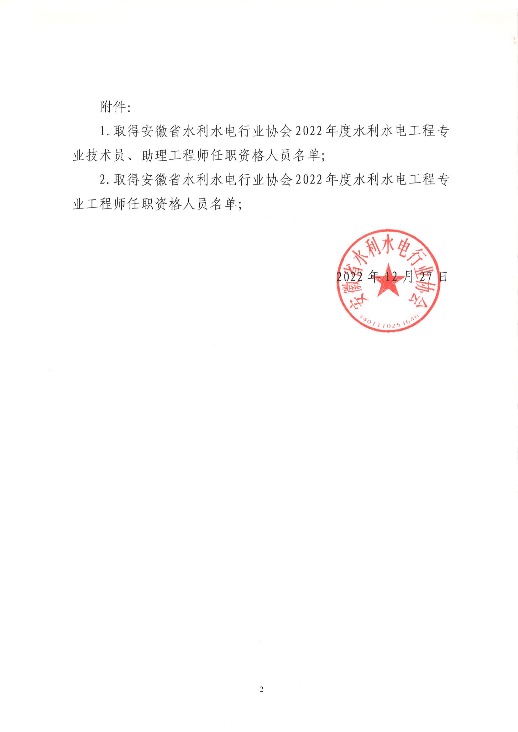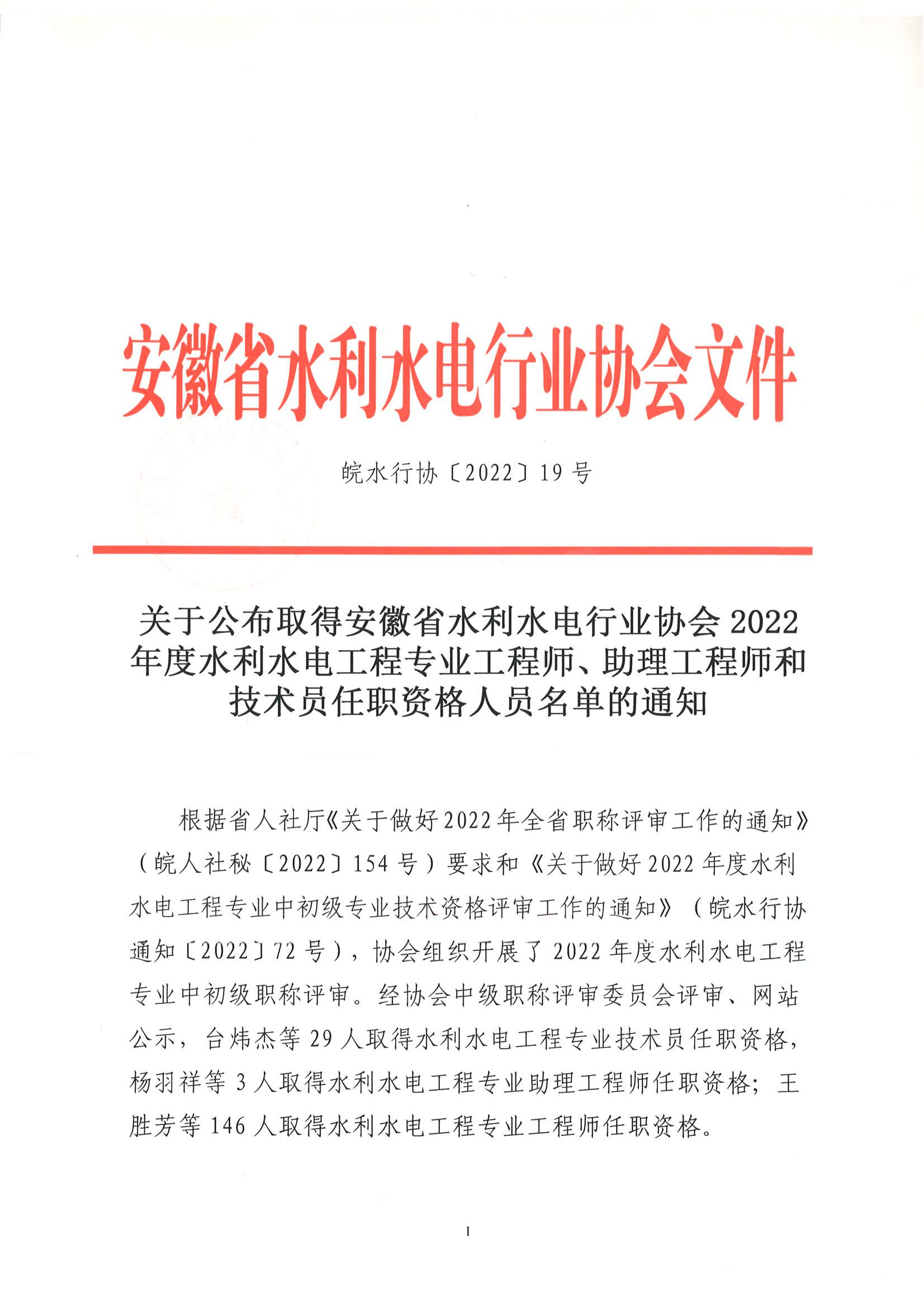 轉(zhuǎn)發(fā)關(guān)于公布取得2022年度水利水電工程專業(yè)工程師、助理工程師和技術(shù)員任職資格人員名單的通知