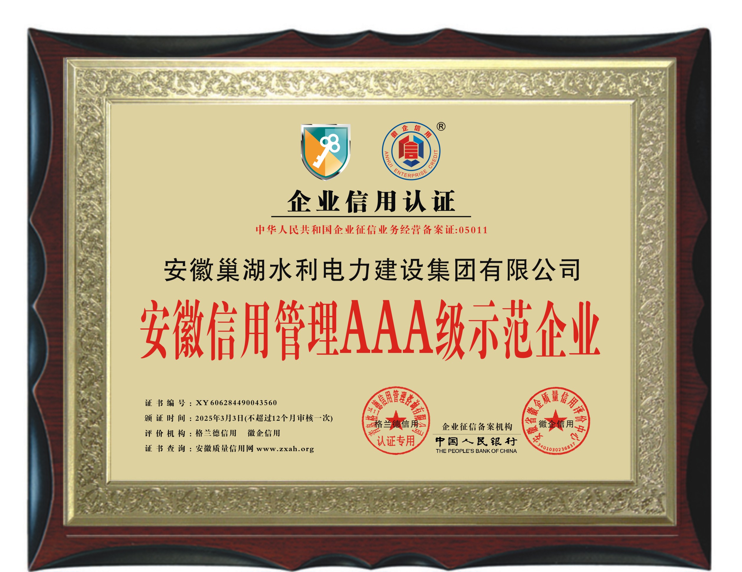 安徽信用管理AAA級示范企業(yè)
